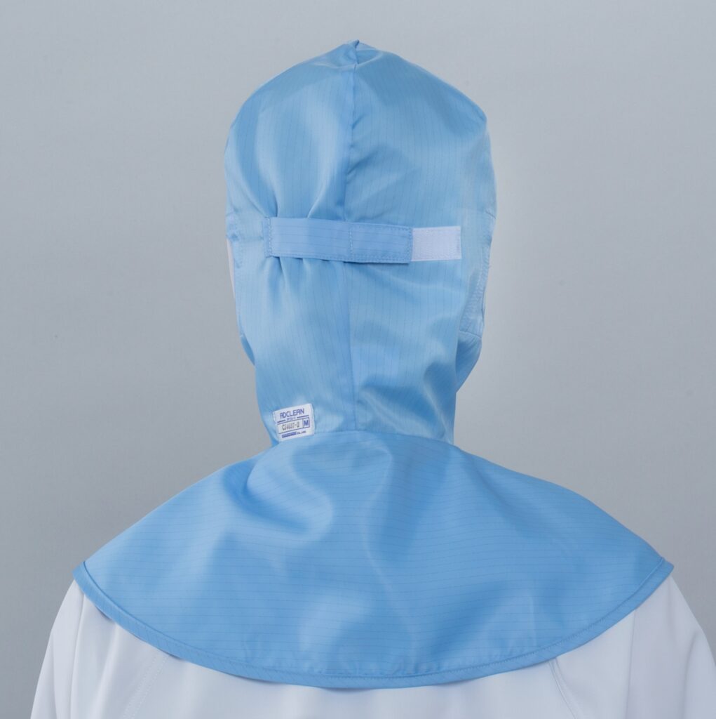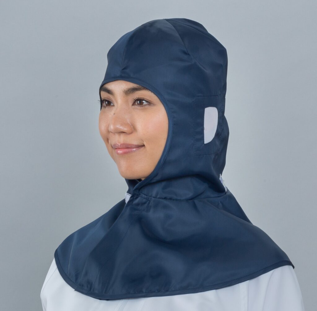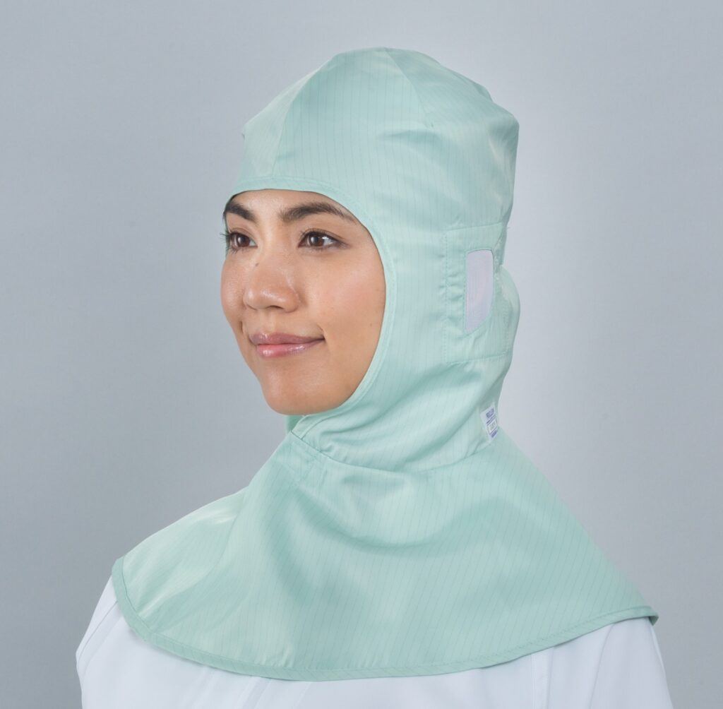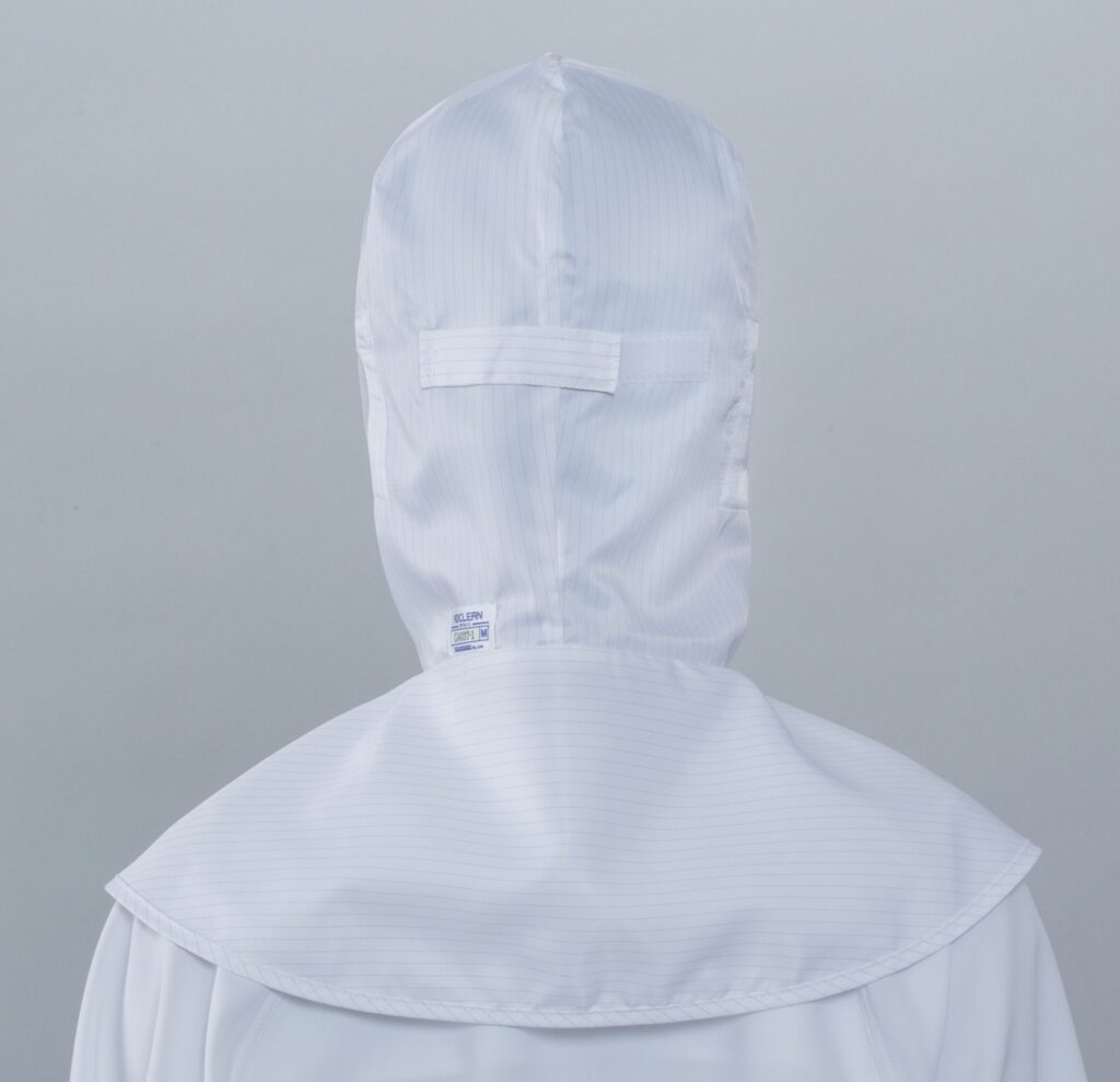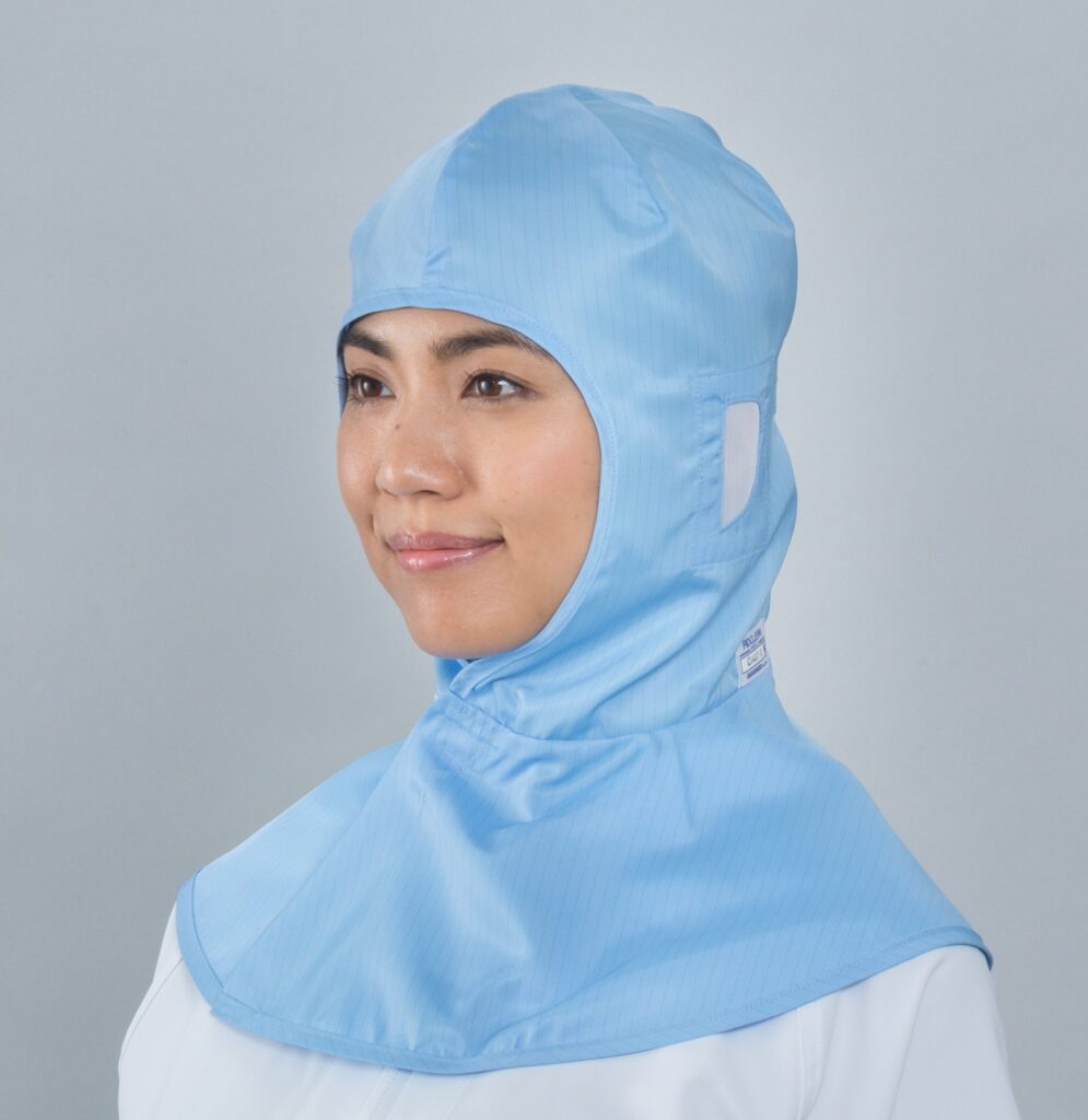 - 低発塵性、制電性、耐久性に優れた、高密度ツイル組織の防塵衣用素材でできたフードです。